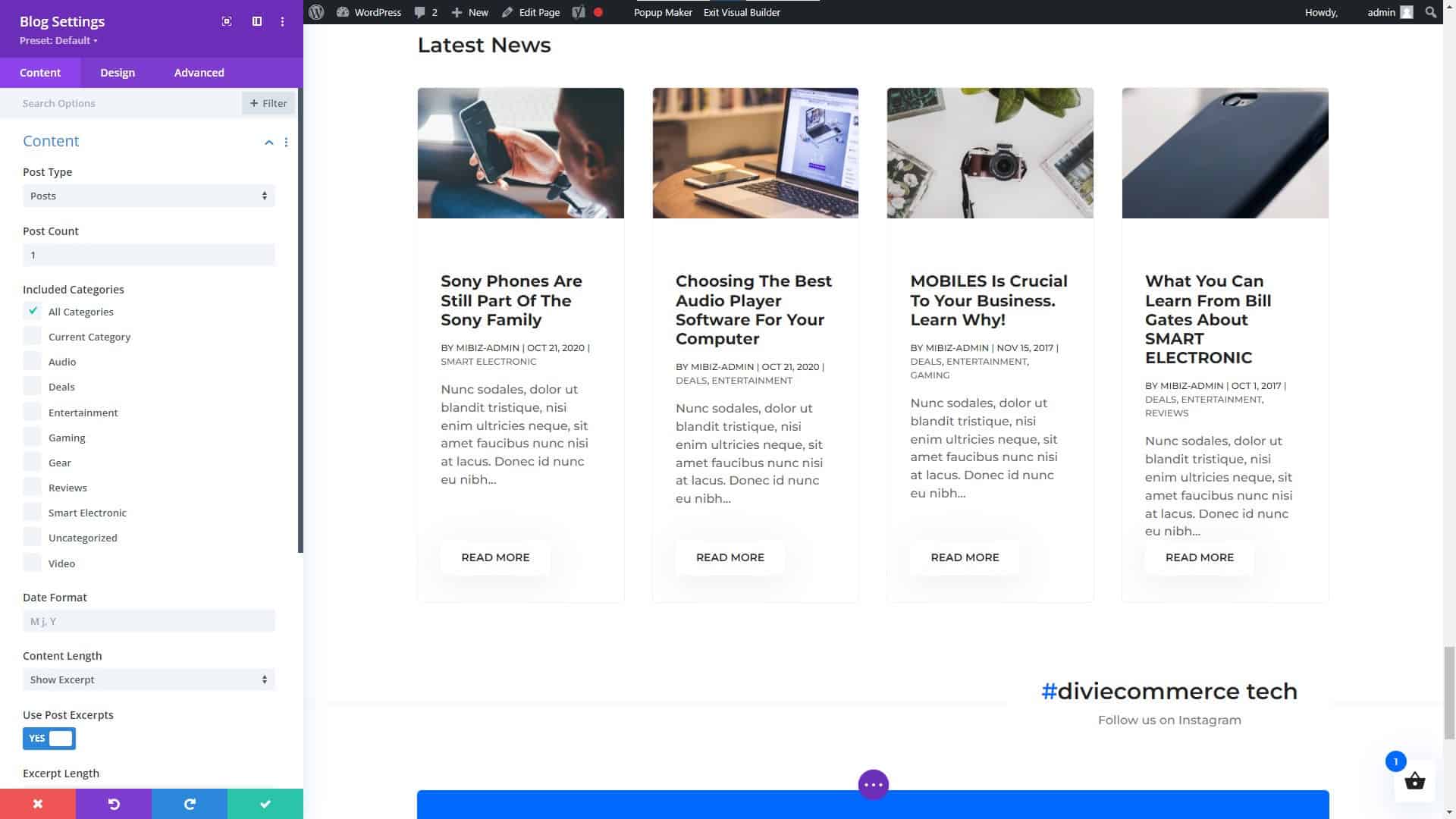 Divi Builder Blog Module Settings