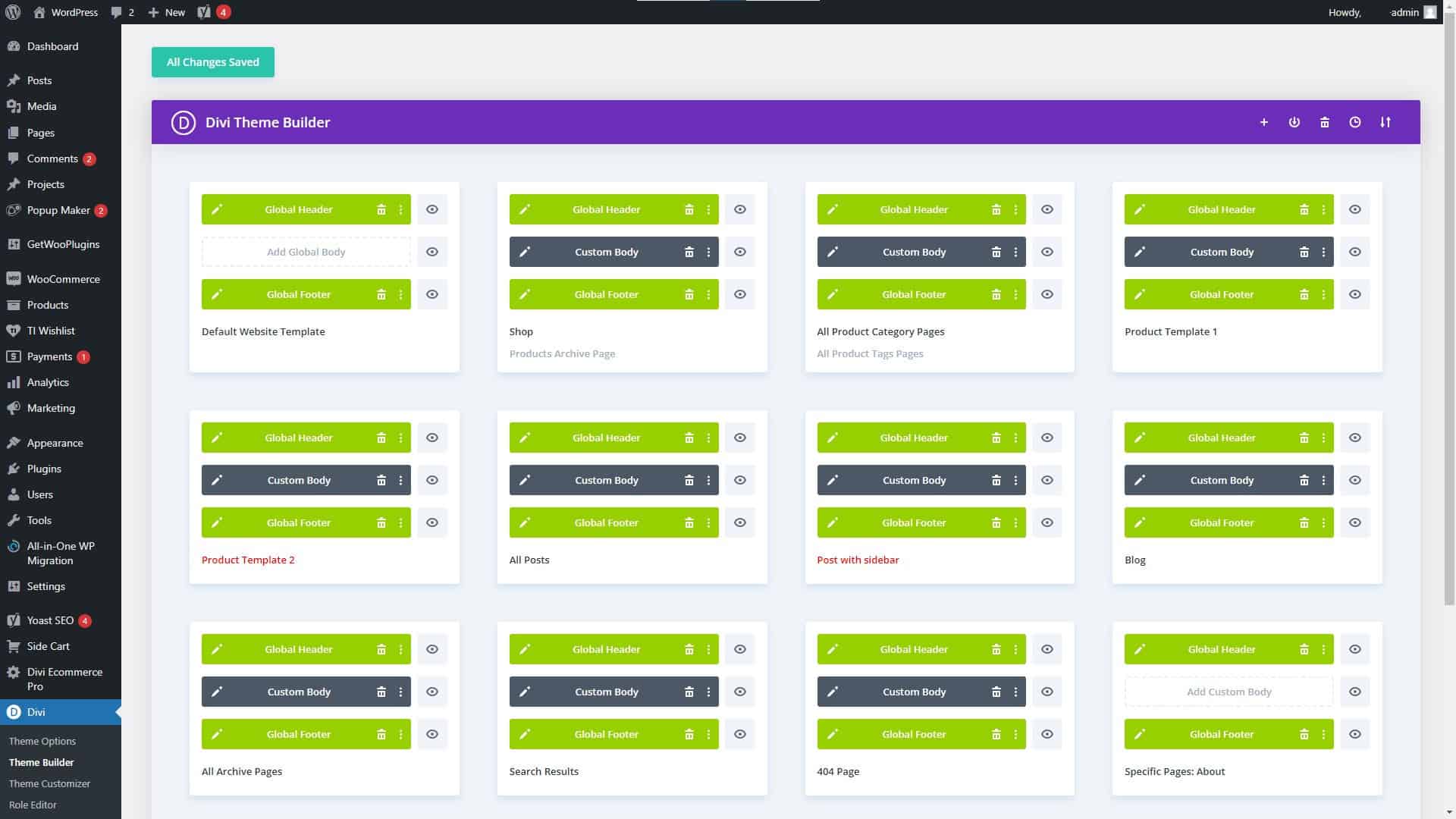 Divi Theme Builder Settings