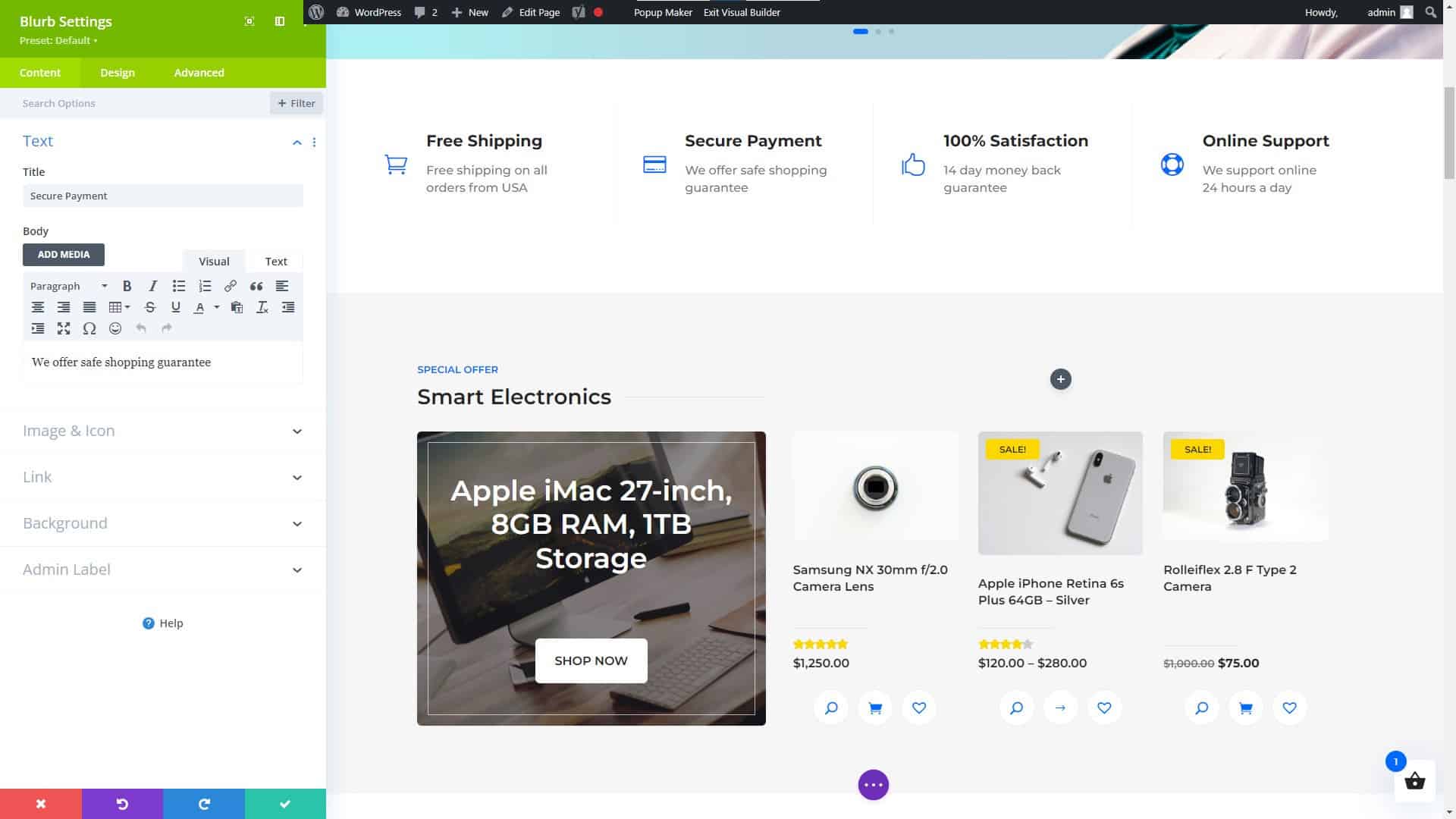 Divi Website Builder Blurb Settings