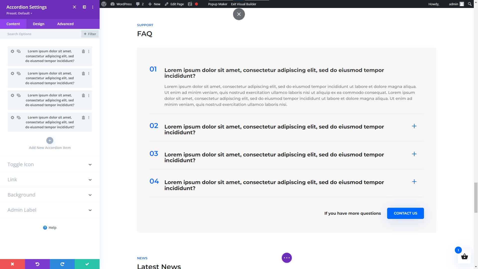 Divi Website Builder for WordPress Accordion Module