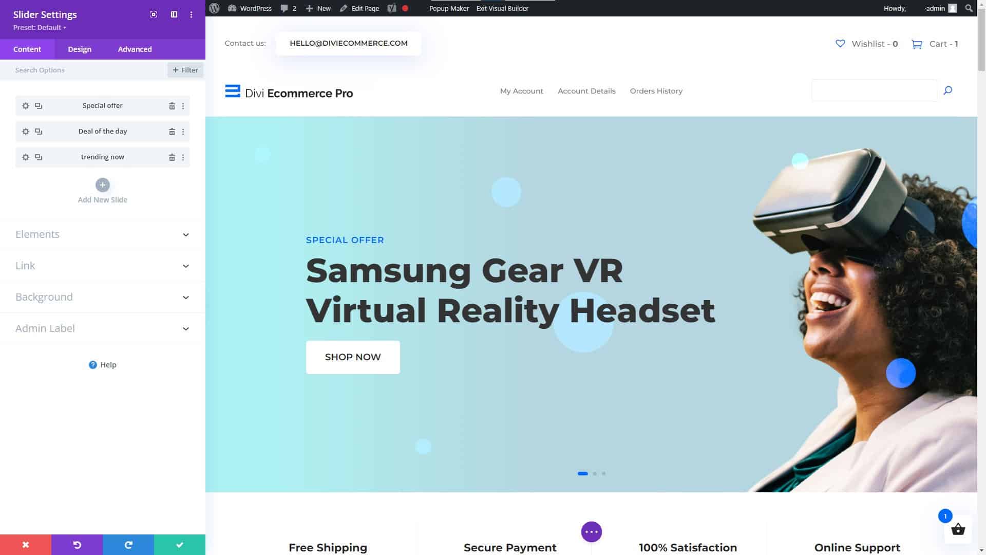 Divi Website Builder for WordPress Slider Settings