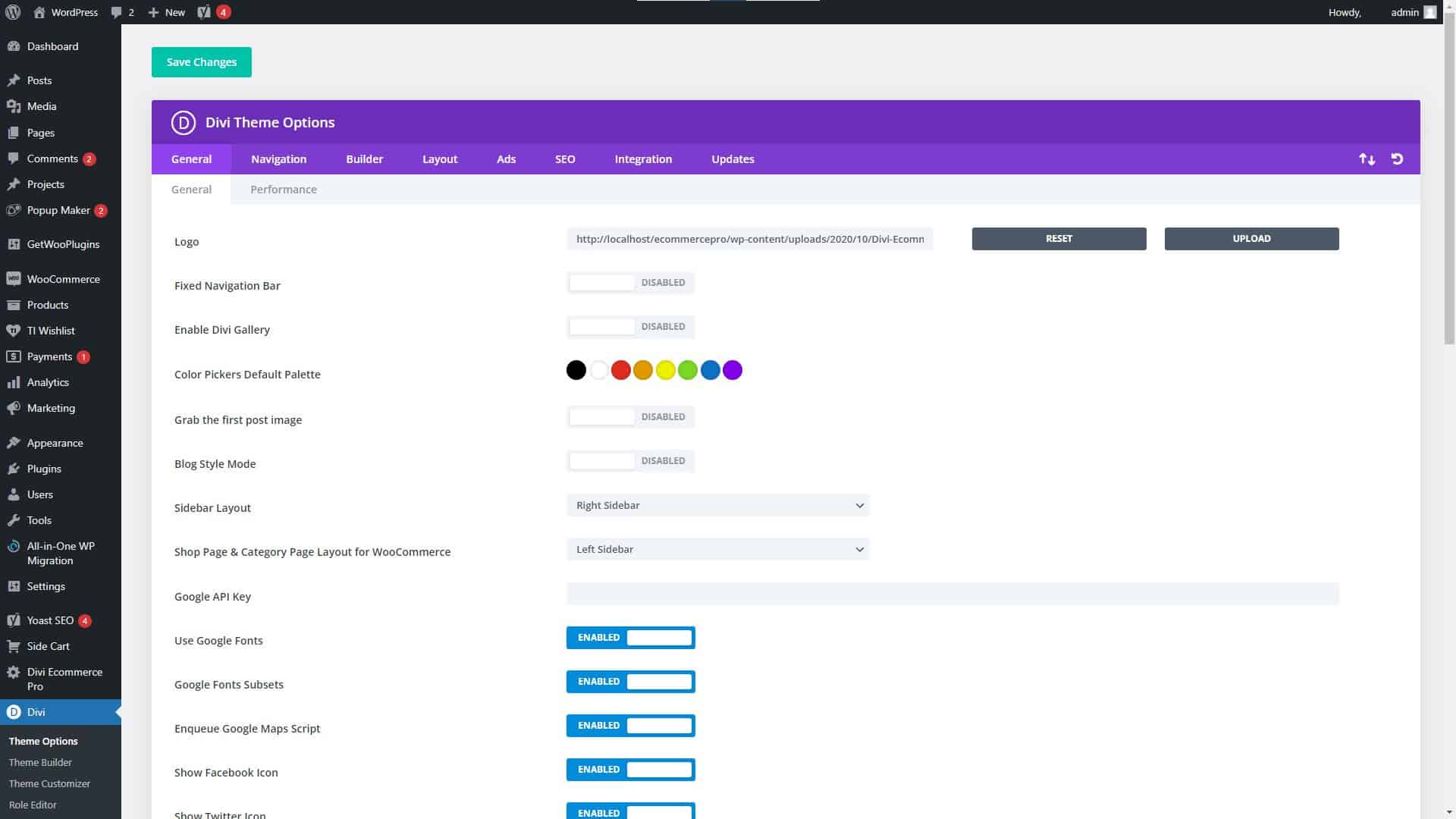 Divi Website Builder Theme Settings
